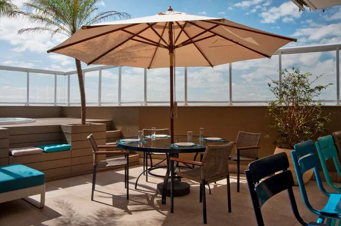 露台中还可以摆上一方长桌,既可以和爱人在广阔的天空下共进浪漫的晚餐,还能邀上三、五好友,一起烧烤畅饮,快乐人生。