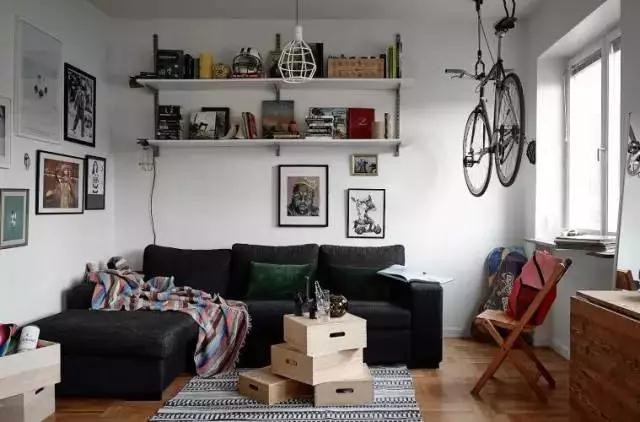 大白墙的可塑性就在于无论你在墙上放什么,都不会因为背景墙而变得尴尬。把你喜欢的一切都统统上墙吧!收纳隔板架或照片墙都毫无压力。