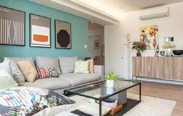 白色和灰色虽然百搭,但对于多数的中国家庭来说总还是会觉得冷清,那么如果白灰背景墙过不了家里人这关,不如就选蓝色吧。况且比起大黄亮橙简直不要好太多噢。