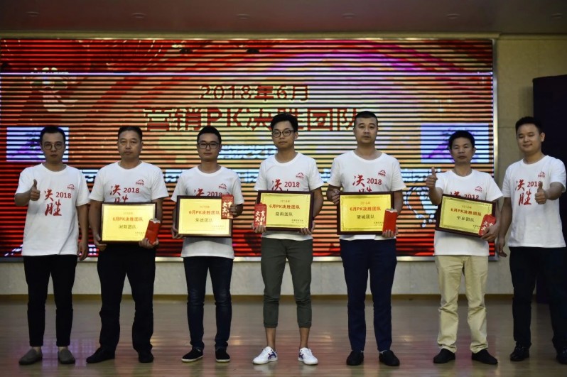 “决胜2018!”会议在充满激情的士气口号与励志的团建活动中拉开帷幕,此次半年度会议共分为经验总结、表彰、7月店庆活动动员、网销运营启动等版块,现场时刻洋溢着满满的正能量。
