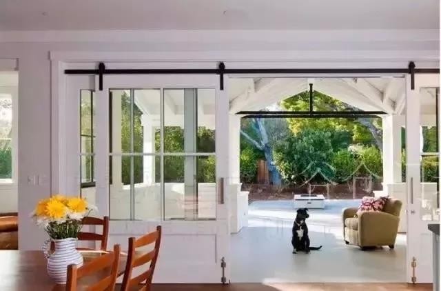 谷仓门带有强烈的美式乡村风格,外形风格独特,极具装饰性,但是不同颜色或材质的谷仓门,可以瞬间转换感觉,轻松与各种室内风格相配,非常漂亮~