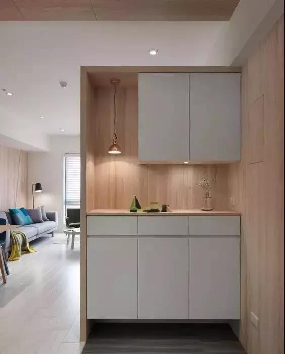 小户型一般都是设计为通道式玄关,也是我国大部分户型中都很常见的,它最大的问题就是要怎样最大限度的利用狭窄通道空间,不会感到有压迫感。
