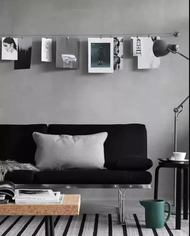 窗帘杆在客厅可以做些什么?喜欢收藏一些版画、明信片和艺术品的小伙伴就可以派上用场了。既让收藏品得到了很好的展示,又不容易损坏。铁质窗帘架搭配艺术品更添了一份高大上的质感。