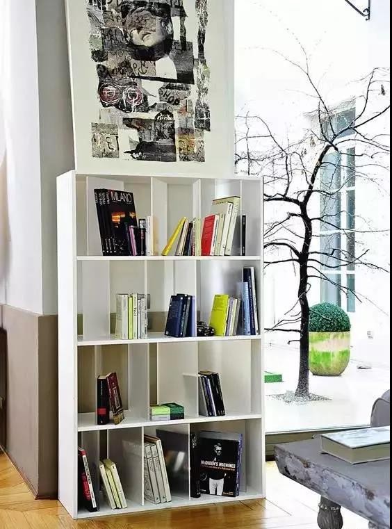 ▲这种化繁为简的书架,让小空间在视觉上有别样的拓展感。选几样极具设计感的装饰品摆放,会让这个小小的阅读区更加灵动。