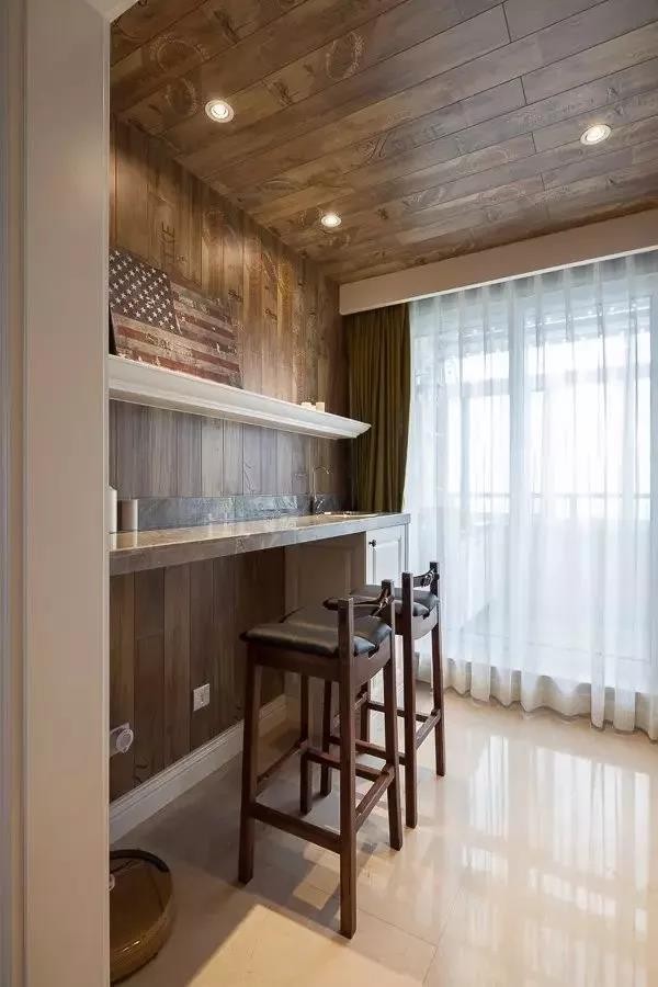 如果说阳台是家里提升品味和增加休闲的场所之一,那么吧台装修则是另一个让人惊艳的地方。一个吧台配一盏小灯,空闲时候,小酌一杯来问候自己的精神世界。