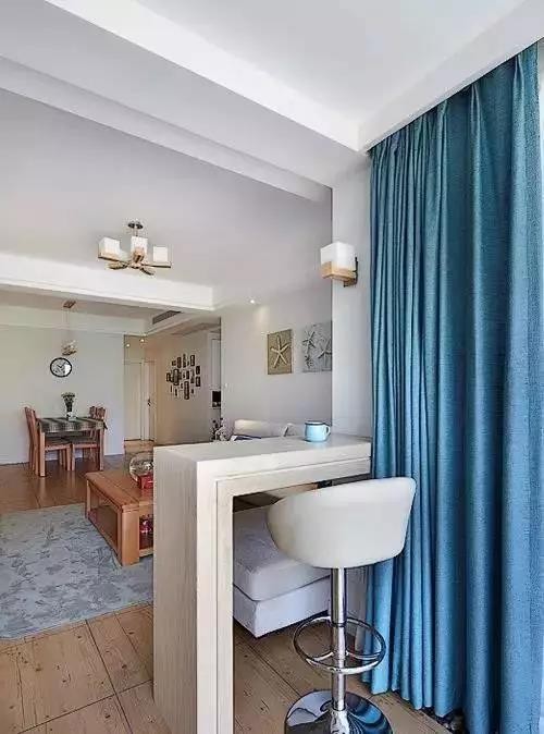 小户型家庭或是开放式厨房,很适合做餐厅吧台,只要将餐边柜搭配在一起,吧台就成为了一张餐桌,还是厨房与餐厅或客厅之间的隔断呢。