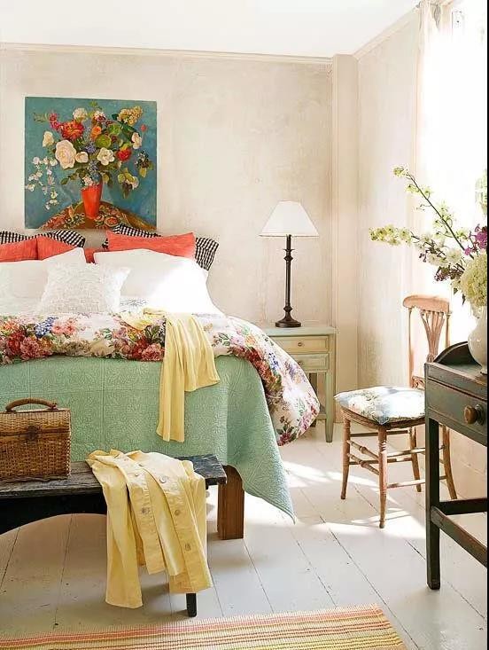 花卉是美式田园风格中极具代表性的元素,不管是床品还是沙发、靠垫,各种纺织品都会带有大面积的花卉图案,那些清新朴实的气息,看上一眼就有自由奔放、温暖舒适的感觉。