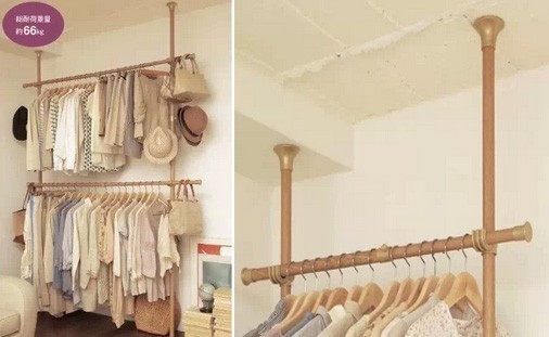 收纳建议师推荐理由:这种衣架上下是吸顶的装置,高度和长度都是可以随意伸缩的,简直就是租房利器,特别是房间家具不全,但是搬家会很麻烦的同学们,用四根木杆就可以搞定了。