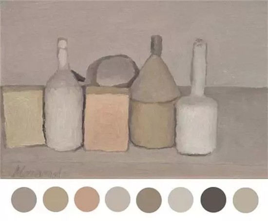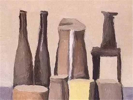 莫兰迪在画作开始时,会涂一些鲜艳的色彩,再用一层颜料覆盖上去,以便让画作产生某种“内部生发”的暖意。正是这样的绘画过程,才能构建那种灰度与距离。