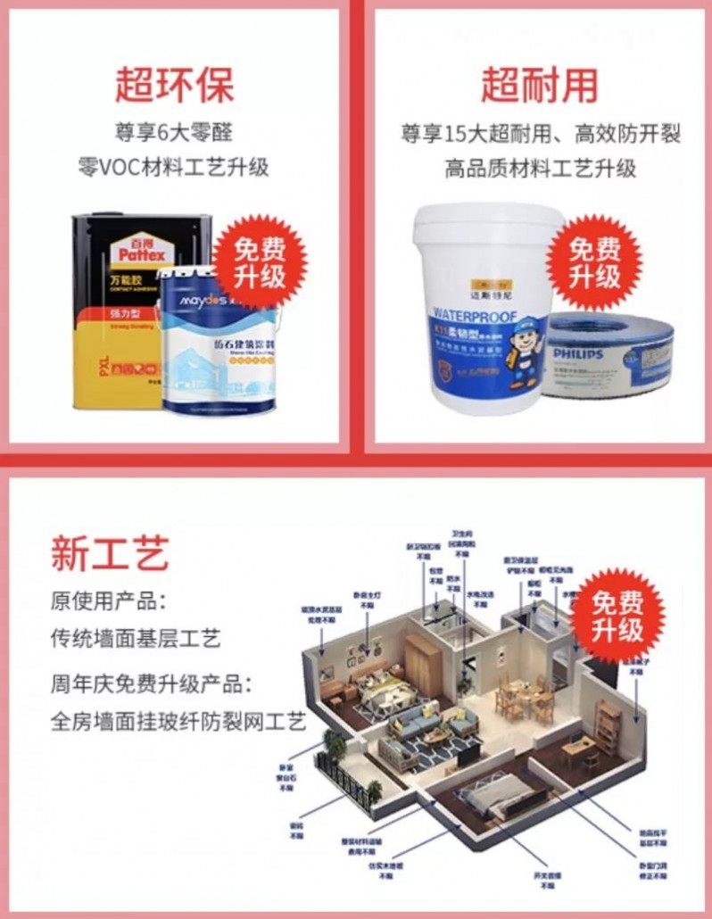 原价1700元/平米,店庆推广价1298元/平米,全系墅装主材+全系进口基材+全系生态实木免费升级+全房品牌家电大赠送+全房品牌家具大赠送+智能设备免费送。