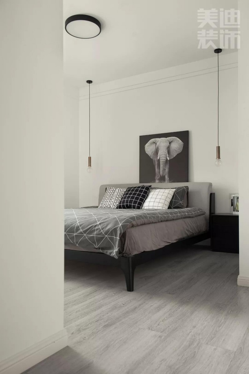 次卧空间不大,墙壁和天花板刷白,让室内显得明亮通透,原木地板更有质感。
