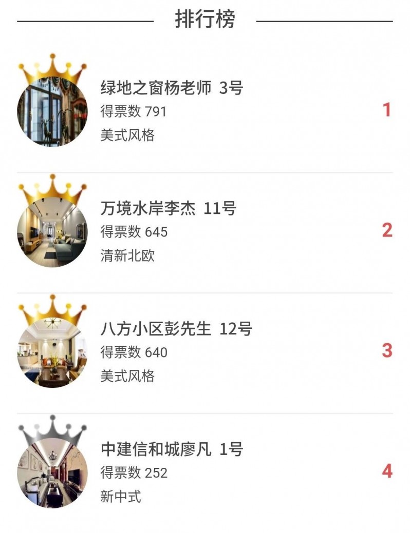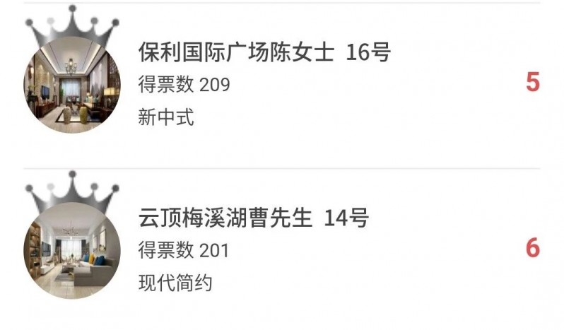 本次的人气美家投票评选在7月14日24点就圆满结束啦,感谢大家积极参与呀,现在到了最激动人心的一刻,公布获奖名单,让我们一起来看一下哪六位业主将会获得本次活动的奖品呢?请看下方小屏幕☟