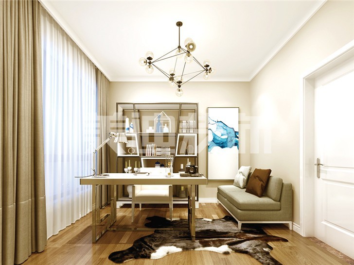 小沙发与书桌、书柜一体化搭配