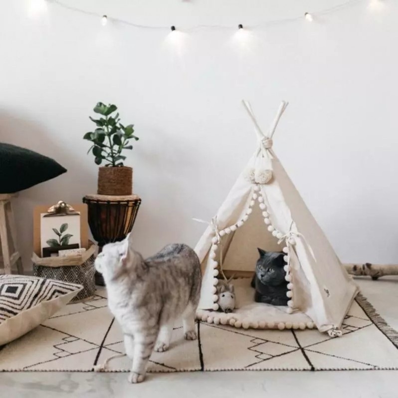 △猫咪印第安帐篷,不仅搭配客厅美观性十足,功能性杠杠的!