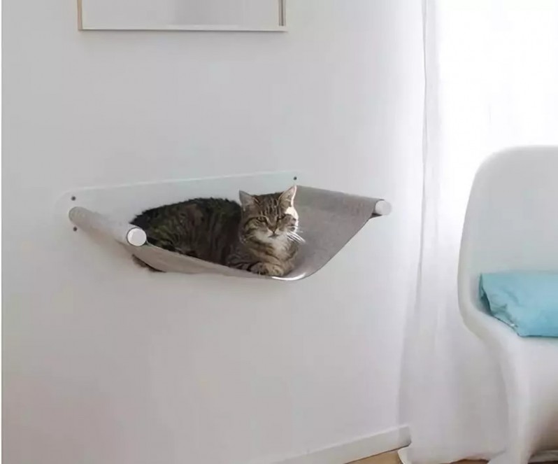 △用螺丝钉或者膨胀钉将支架固定到墙上,根据自家宠物的体型大小将间距量好,之后将缝好的布袋穿到支架上,一个悬挂风格的宠物窝就做好了。