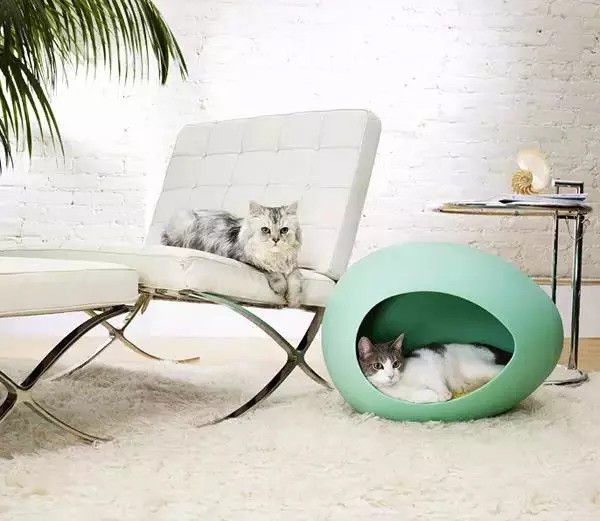 △在地毯上放一个不规则的宠物窝,不仅能装饰房子,还能给猫咪当个窝,何乐而不为呢!