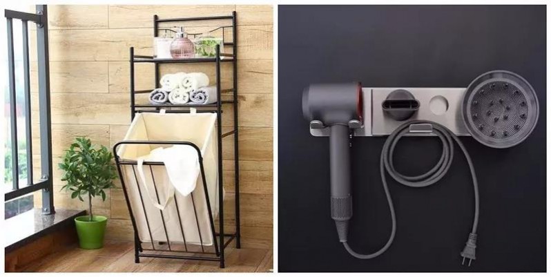 美迪整装新品设置卫浴五金挂件,包括吹风机架、置物架、脏衣篮等让部分杂物得到更加合理的空间规划。