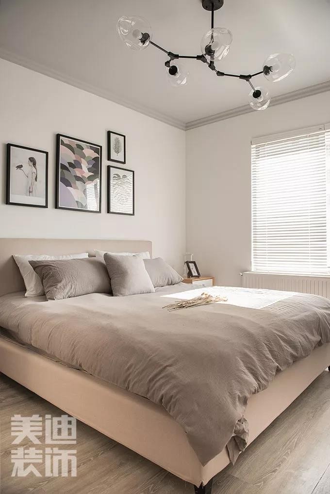 ▲实木智能整装·卧室丨推门而入的灰色色调,简约舒适的空间人居住者身心放松,别具一格的吊灯增添空间的温馨感。