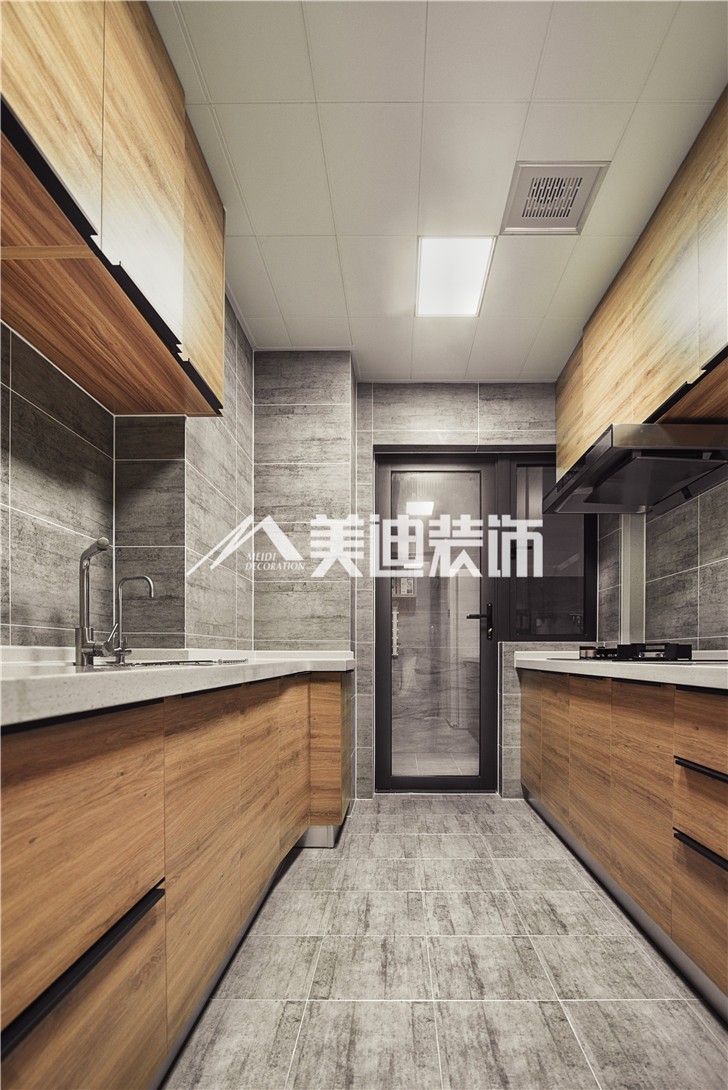 适合户型:例如120㎡-150㎡的大户型,厨房面积要到8㎡左右,厨房宽度要足够,才能满足双向操作台和中间走道的设计。