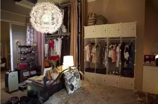 小小的房间里,被各种收纳工具占据着。树脂组合衣柜、鞋架、人台衣架、落地衣帽架等,容纳了几乎所有樊胜美的衣服和物品。