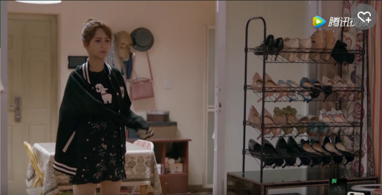 房间里整齐的收纳柜、简易鞋架、小碎花床品等,干净整洁而带有小清新的格调,很符合关关的人物特点。