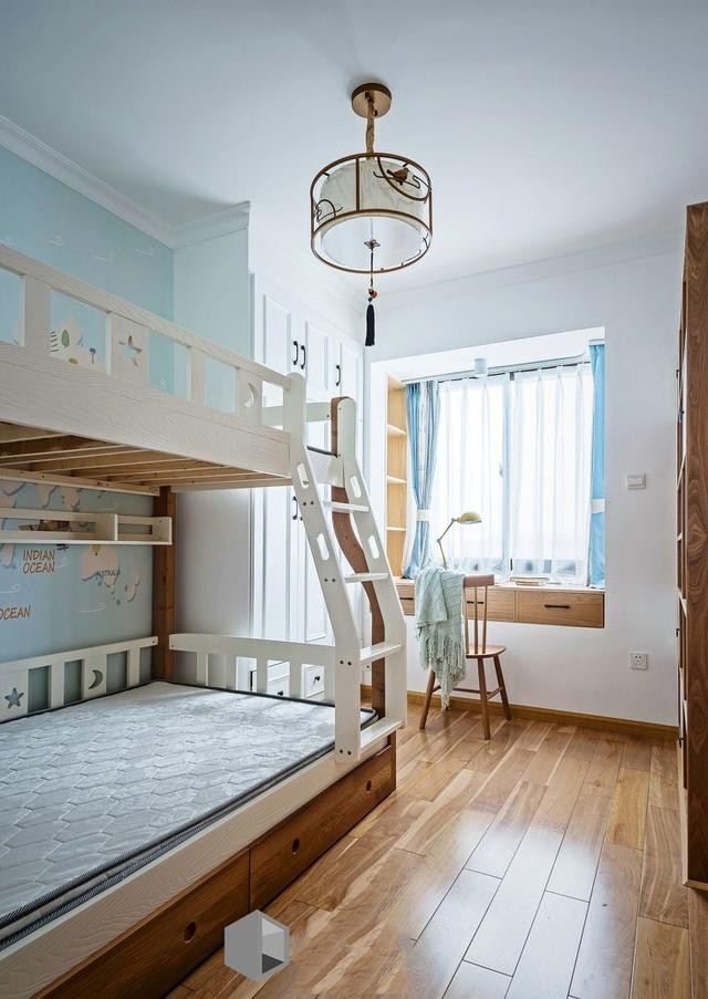如果你不想儿童房有太明显的男生与女生的区别,可以选用这种比较中和一点百搭的儿童房设计。