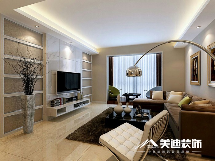 客厅中的家具应搭配成一高一矮,一虚一实的组合,形成“山水”之势。如果你的客厅只有一组沙发,一个茶几,一个电视柜的话,那么这些矮家具的组合就犯了风水上的有“水”无“山”之忌,房间显得空荡荡的没有生气。有个很简便的方法,可在电视柜上挂相框,或者钉几层装饰板,这样就加高了电视柜的高度,使得房间里有高有低,错落有致。