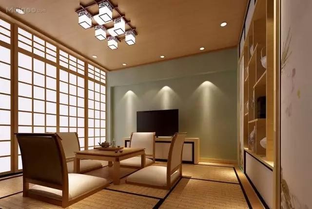 日式室内装修设计中色彩多偏重于原木色,以及竹、藤、麻和其他天然材料颜色,形成朴素的自然简约风格。