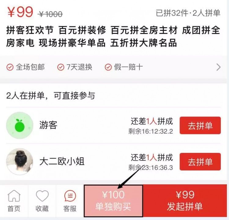 目前已有 32 人成功拼团
