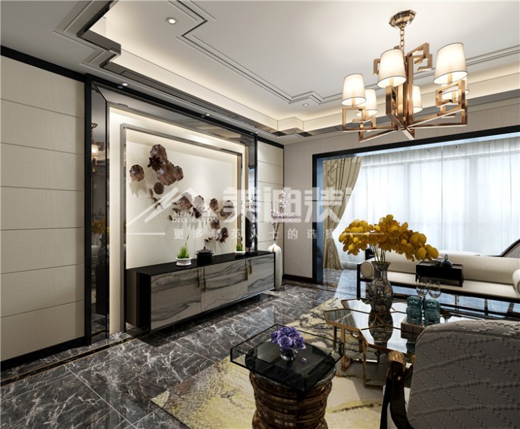根据审美和经济条件,选有代表性的为重点,就算达到目的。最能体现的是天花与门窗,窗户用实木雕刻不同造型,天花做祥瑞图案,让人感到中式韵味。