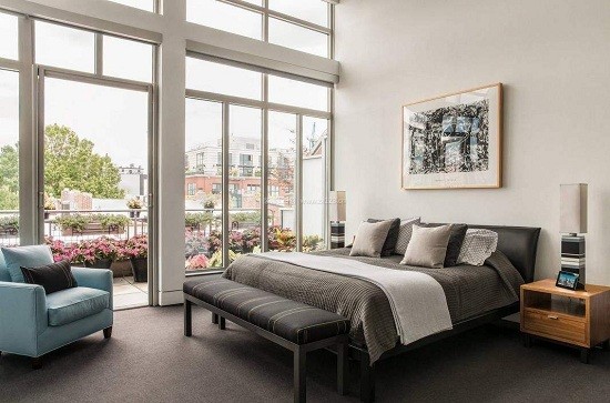 小阳台与卧室相连时,为了能有效利用空间,也可以将其与居室打通而连为一体,只须用落地窗与外界隔开,以获得较好的私密性和装饰效果便可。如果装修时把小阳台与卧室的地面铺成一色的地板,会令空间增大不少。在很多公寓的结构中,卧室部分的阳台总是内开放的,它的空间与卧室连通,这就更简单了,挑选一件或者几件家具,将之摆放在阳台最舒适的角落,它自然就形成了一个休闲区域。