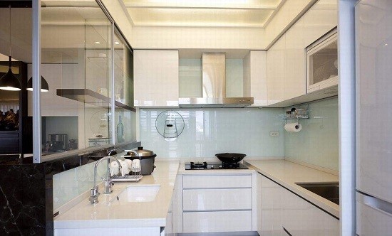 如果你是一个喜欢自己动手的中餐美食家,而又忽略了开放式厨房的缺点,那可是问题了。试想,如果满屋子弥漫着油腻和辛辣,恐怕“享受”的就不仅仅是进餐的乐趣了。对于这些朋友,建议采用折中的办法:大功率抽油烟机加玻璃隔断。既有通透效果,又免受油烟之苦。