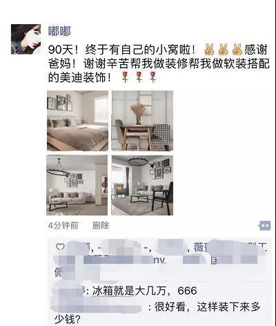 腆着脸去打听了一下隔壁小姐姐的装修情况,才知道原来小姐姐选的是时下最省心的整装模式,美迪装饰主打998元/㎡的宜家风整装,包含全部主材辅材和灯具,还免费送了价值3万元的全房家电!