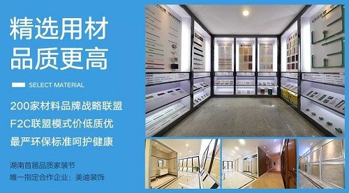 美迪装饰精选用材,遵循从“全球挑选一线大牌,又从大牌中挑选明星畅销款产品”的原则,做到品牌品质“双保险”。与全球200余家知名材料品牌达成战略联盟,采用F2C模式,减少中间环节,让利于消费者,保证产品的高品质和低价格。