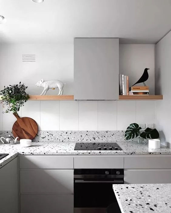 作为一种人造石,水磨石就是将不同色彩和不同大小的碎石、玻璃、大理石、石英石、花岗石等拌入水泥粘接料制成混凝制品后,再经表面研磨 、抛光的制品。这个曾被看作低廉、守旧的材料,近两年又以各种形式不断出现,其随意不规律的花纹和样式,赋予创作更多的想象和可能。