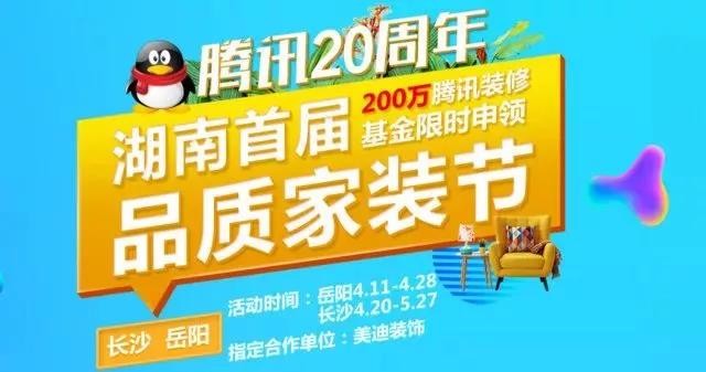 腾讯20周年湖南首届品质家装节选取专注家装18年的大品牌“美迪装饰”为指定合作单位,美迪装饰本着设计是装饰的灵魂、质量是企业的生命、诚信是立业的根本、环保是良心的见证,和腾讯强强联手,致力将美好生活带个星城每一位市民。