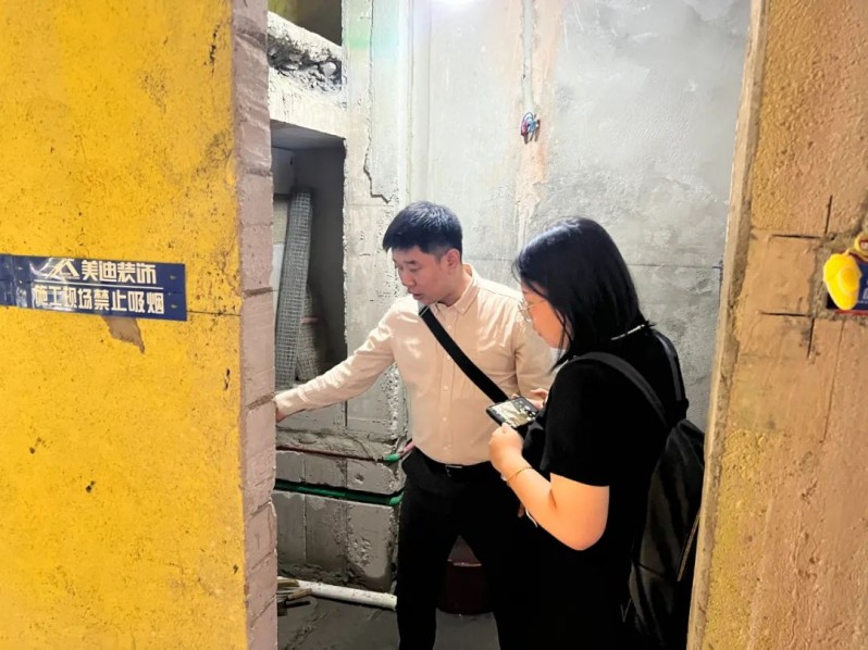 本次走访调研致力于带来真实、全面的家装在建工地原貌,走访重点以在建工地随机调研为主。第一站,调研组来到了美迪施工工地——梦想·麓隐天境,从工地施工现场管理、工艺、材料、工期、施工人员状况等多方面对美迪的服务质量进行考察。调研组认真听取了基本情况后,对美迪工程质量表示高度认可。