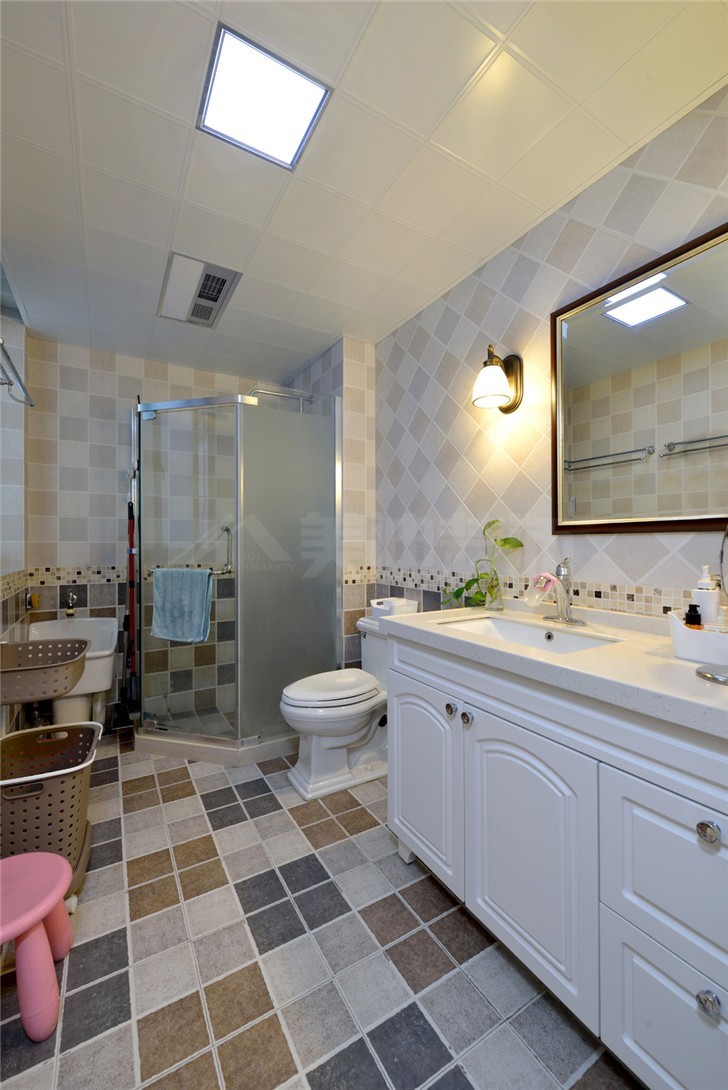 卫生间利用角落空间设立了淋浴区,提高了空间的利用率。简约的地板与墙砖的色彩搭配相呼应,不单一,也不复杂。
