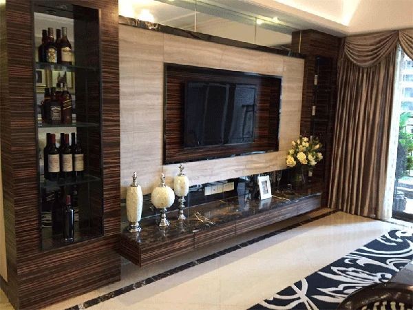 木质材料是装修过程中比较被广泛用到的,如门窗,橱柜,家具等等,都有可能用到饰面板。目前,将它用作电视背景墙的人也越来越多了,因为它花色品种繁多,价格经济实惠,选用饰面板做背景墙,不易与居室内其它木质材料发生冲突,可更好地搭配形成统一的装修风格,清洁起来也非常的方便。