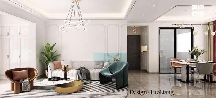 长房半岛蓝湾100㎡法式轻奢风装修案例效果图